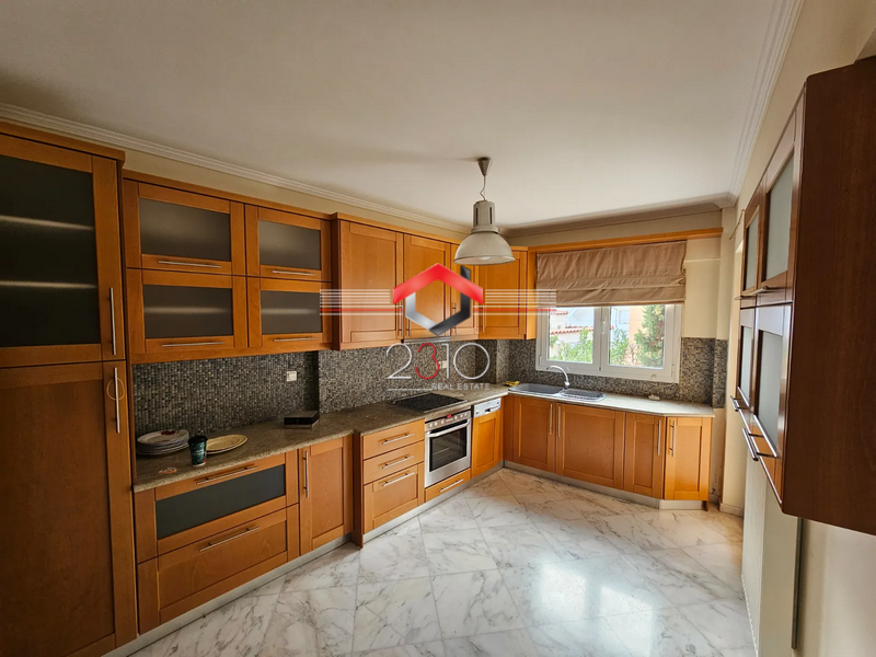 Pylaia to rent Ground floor Maisonette 150sq.m. , built in 2004 New development , consists of 3 bedrooms 1 master 1 living room with kitchen 2 toilets . The heating system is central - Petrol ,A/C . It also has storage space ,secure door ,balconies ,elevator . Price (950€)